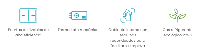 Mantiene temperaturas constantes en rango de congelación, asegurando que los productos conserven su calidad incluso en uso intensivo.